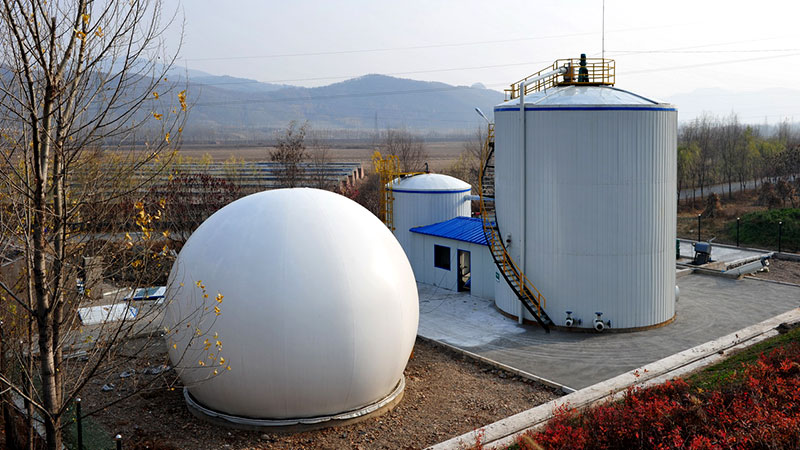 采用“水解預處理+CSTR發酵+太陽能加熱”的工藝路線,解決了北方沼氣工程因冬季氣溫低導致的產氣量低問題,降低了運行成本,沼氣凈化后供給周邊450戶農戶炊事使用,年處理周邊養殖場豬糞污共6570t,年生產沼氣約1.46×105m3。